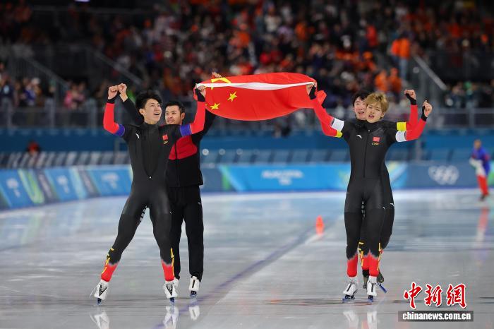 在米兰冬奥会速度滑冰男子团体追逐赛B组决赛中,中国选手刘瀚彬、李文淏、吴宇、宁忠岩以默契配合和顽强斗志,以打破历史最佳战绩的成绩战胜荷兰队...